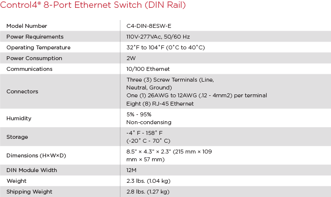 8 портовый Ethernet коммутатор DIN C4-DIN-8ESW-E