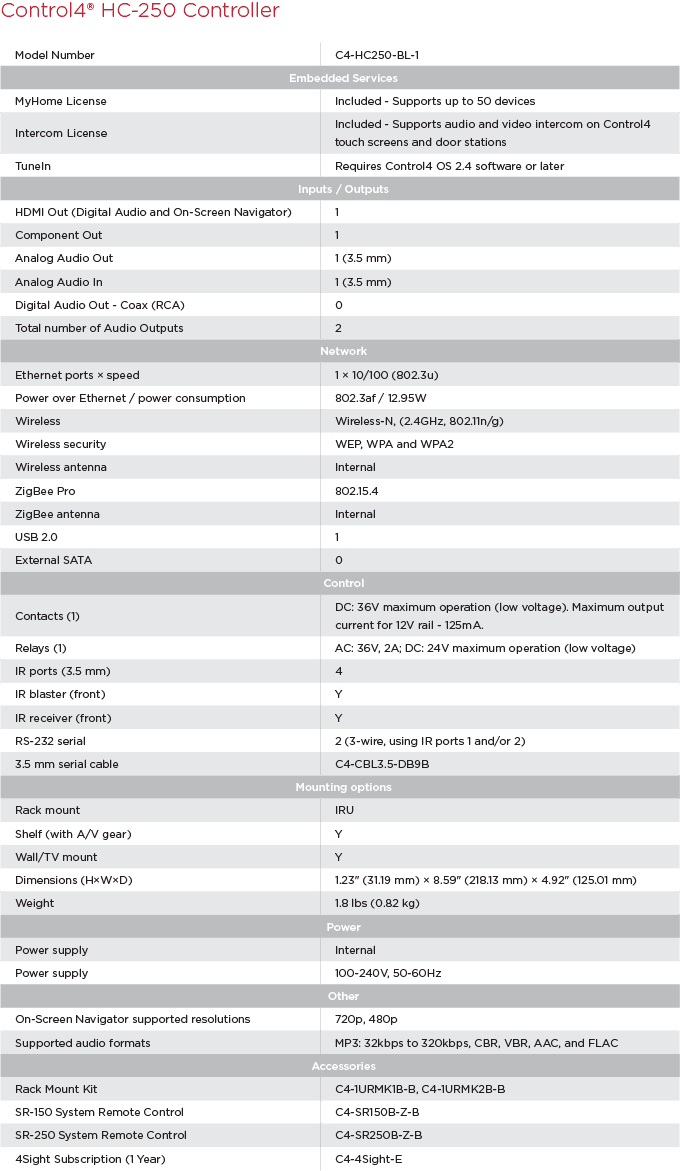 ЗаказатьКонтроллер управления HC-250 с лицензиями на интерком/домофон и MyHome Site (аудио выходы: 1 аналог., 1 HDMI; 1 аудио вход; 4 IR/2 RS-232, 1 I/O контакт, 1 реле; Wireless-N и ZigBee с внутренними антенами; USB; PoE/220В)