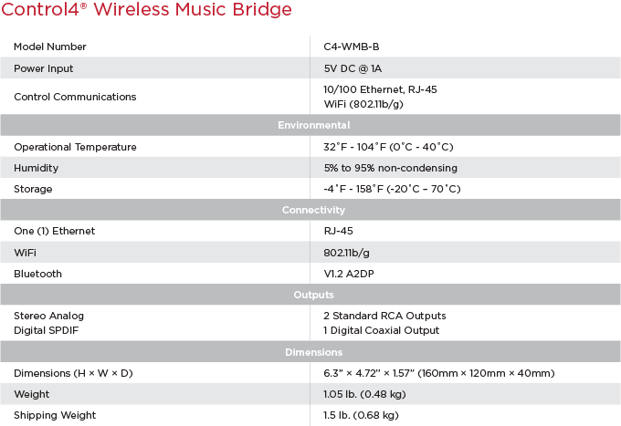 Wireless Music Bridge Музыкальный шлюз (поддержка AirPlay, Bluetooth и DLNA; Стерео аналог и Коаксиальный цифровой выходы; управление по 10/100 проводному или по 802.11 беспроводному Wireless Ethernet соединению)