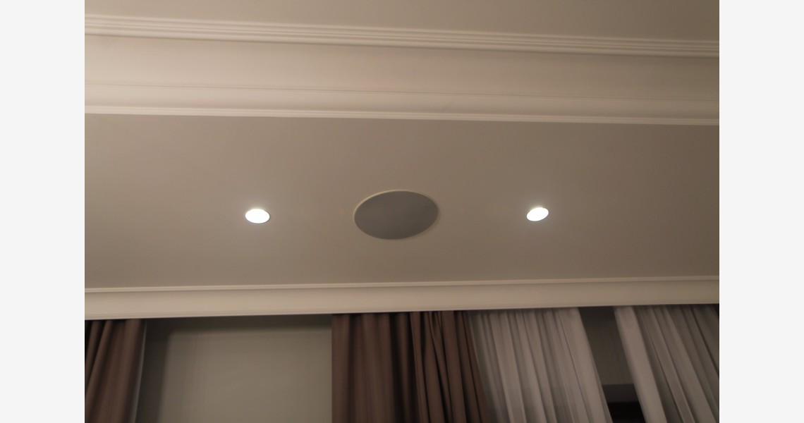 - Трансляция аудио сигнала через встраиваемые в потолок акустические системы,